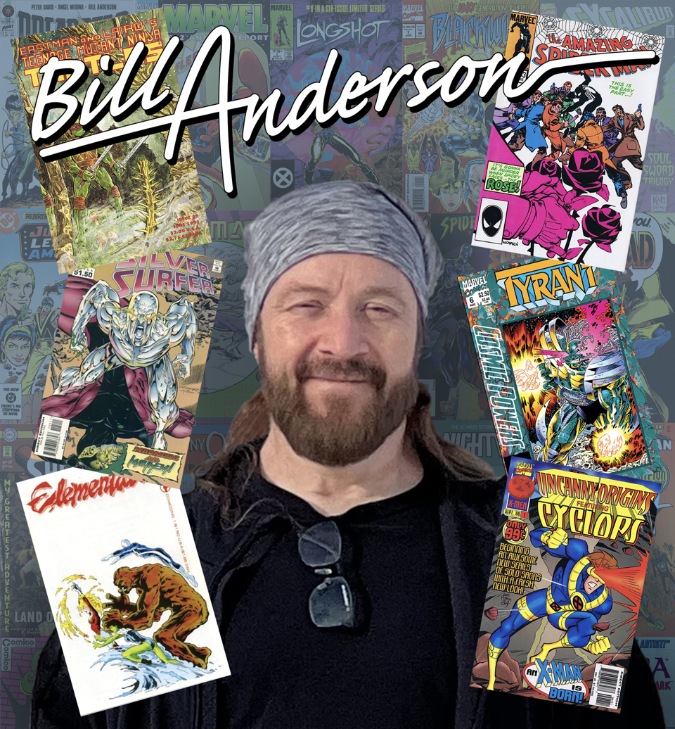 Bill Anderson has inked hundreds of comics for Marvel (Silver Surfer, Spider-Man, Cosmic Powers, Uncanny Origins); DC (Action Comics, Superman, Superboy, Batman and the Outsiders); Mirage (Teenage Mutant Ninja Turtles, Turtle Soup); Image (Vanguard, Ethrian); Comico (Elementals, Robotech, Jonny Quest); Claypool Comics (Elvira) and countless other publishers.